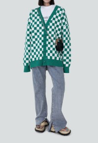 UZIP DESIGN Women’s retro checkerboard knit cardigan SS2022 VOL.2