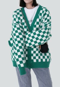 / / UZIP Brands Women, レディース, WOMENニット・セーター, 先行予約 / UZIP DESIGN Women’s retro checkerboard knit cardigan SS2022 VOL.2