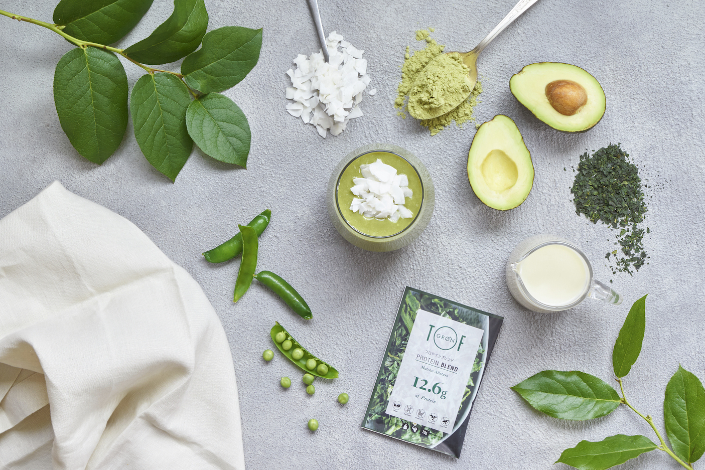 與日本Training Gym Total Workout共同開發,專為健身人士打造「完美身材」為概念的無添加植物性營養蛋白粉。(加入有機抹茶、辣木及桑葉,混合以豌豆提煉而成的蛋白為成份) 不使用28種過敏性原材料,也沒有使用食品添加劑或人造甜味劑。